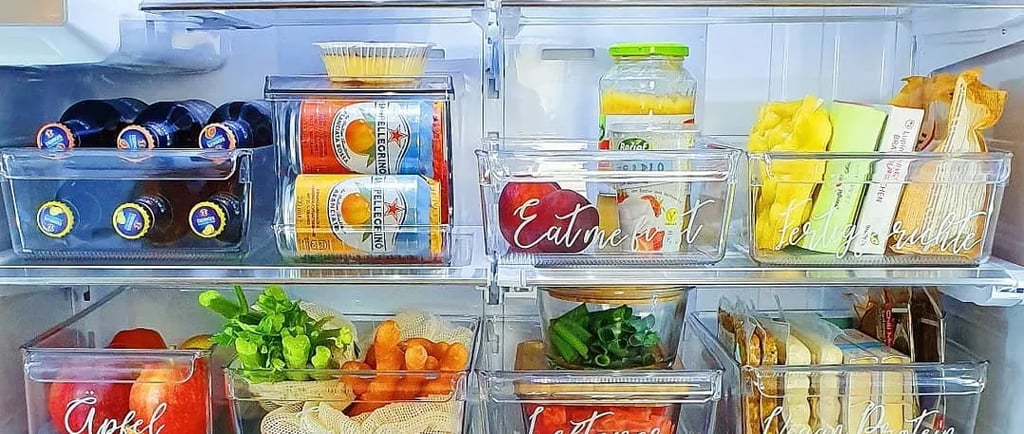 Fridge Bins: Stackable bins are perfect for grouping like items together. Use bins of different sizes for various food categories.